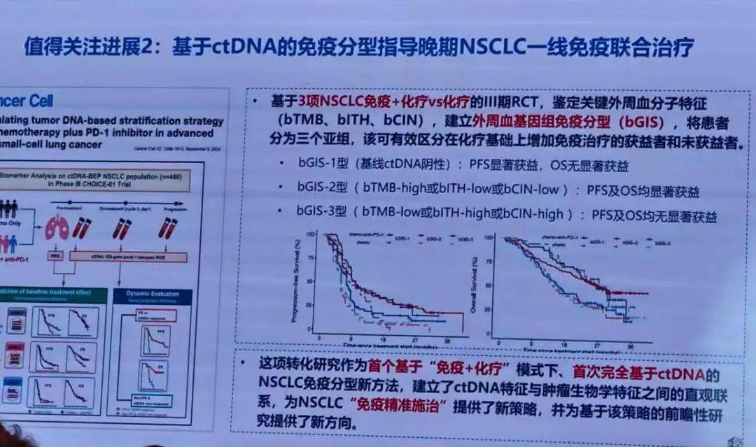 bGIS-1 组(19.3%):ctDNA 阴性,仅短期无进展生存期获益,长期总生存期无优势,或无需额外免疫治疗;